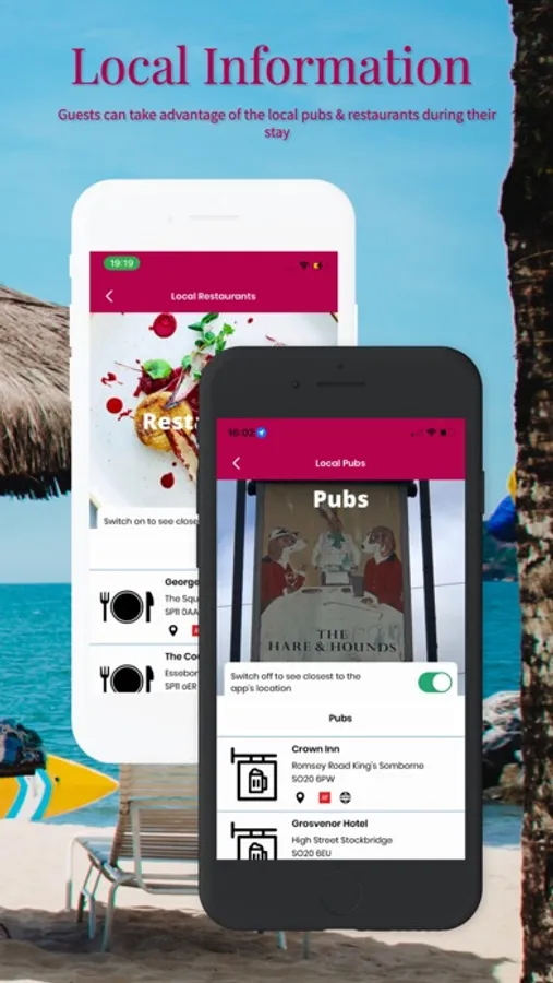 Keep guests informed about restaurants and pubs and include other built-in datasets.