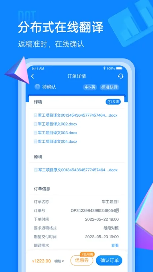 IOL语联网通过分布式在线翻译系统、人机共译系统、垂直的AI化行业机翻引擎赋能提供标准化的翻译服务。同时提供项目管理服务包括:项目管理、质量检查、成本控制、人员管理等,极大的提高了订单流转的整体效率。通过在线沟通、自由议价、一键下单,平台为您管控订单全过程,提供全面、高效且极具性价比的服务,让翻译更加简单。