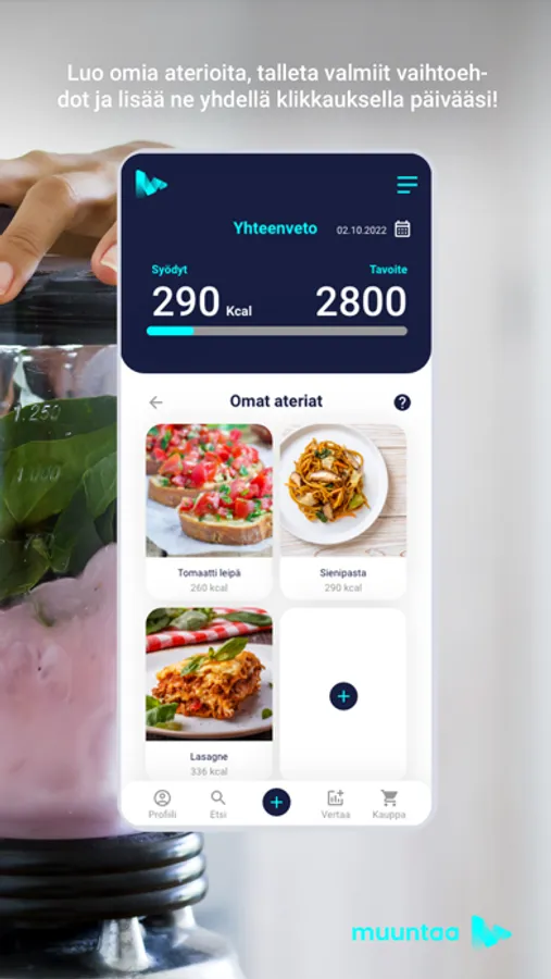 Etsi ravintoaineita yli 40000 valikoimasta. Löydä vastaavia tuotteita helposti ja nopeasti ja rakenna ruokavaliosi mieltymyksiesi mukaan. Etkö jaksa aina syödä kanafilettä? Ei hätää, Muuntaa muuntaa kanafileen vastaavaksi ruoka-aineeksi, josta saat saman verran tärkeitä ravintoaineita.