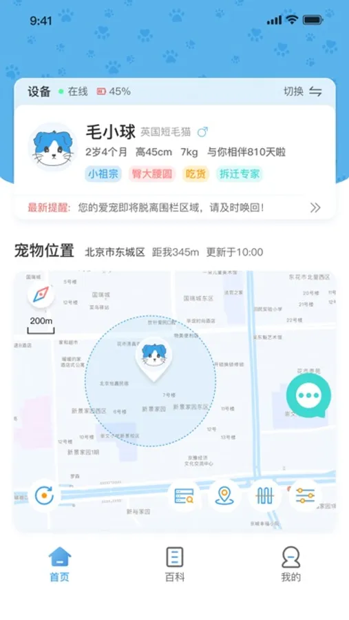 宠物走失也不怕,一键寻宠帮大忙。声音、指示灯、路径规划,帮你找到爱宠