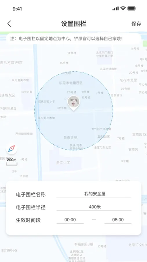 设置定位模式,监测宠物的位置及电子围栏报警,历史轨迹查询