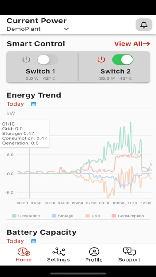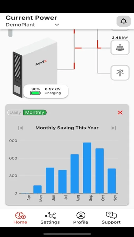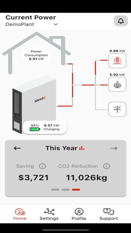 Redx Power mobile app. The app allows users to add, control devices, monitor realtime energy flow and data.