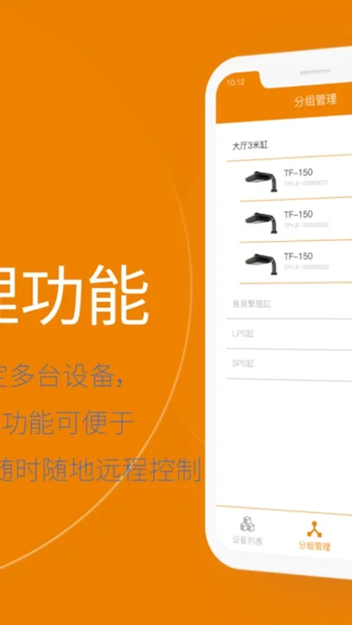 【多台灯具控制】APP可绑定多台TF150系列灯具,并通过分钟管理统一控制多台灯具。