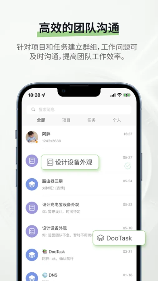 针对项目和任务建立群组,工作问题可及时沟通,促进团队快速协作,提高团队工作效率。