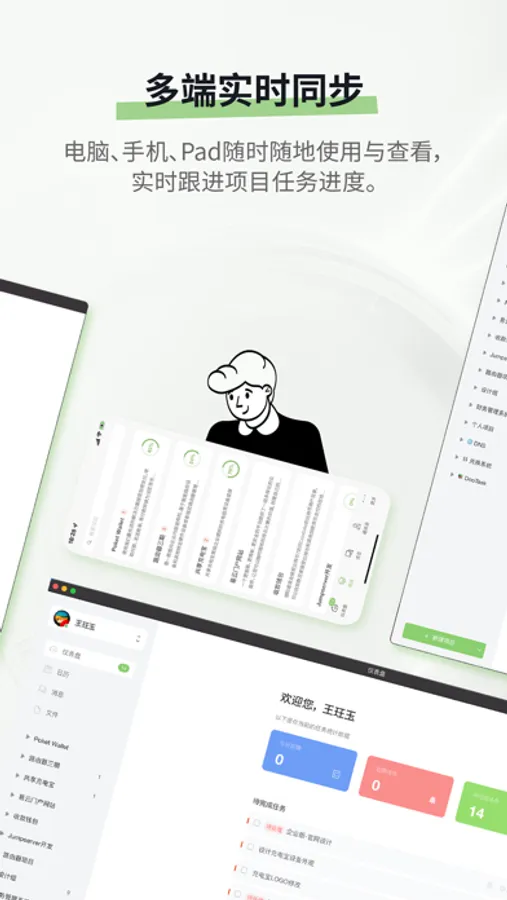 多平台应用支持,打开客户端即可跟进项目任务进度, 同时让你在工作中每一个步骤都能拥有更高效愉悦的体验。