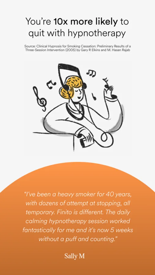 Finito is a self-hypnosis program that addresses the underlying reasons that cause you to smoke, providing hypnotic suggestions to the subconscious to manage cravings, emotions, and habits.