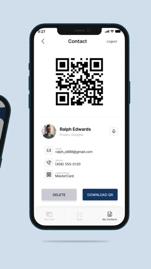 2) Share your virtual card using your unique QR code, email, text message, social media. You can also send anyone the link to your business card.