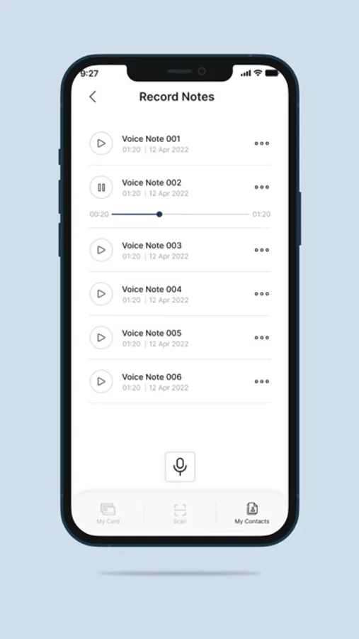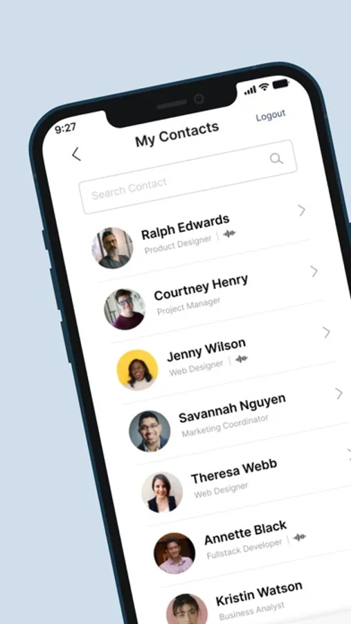 "Hi World" allows you to create and share digital business cards, manage your contacts and manage voice notes for your contact.
