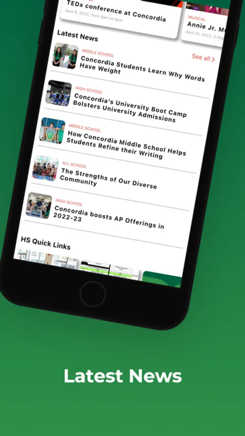 Concordia Hanoi mobile app is the official mobile app of Concordia International School Hanoi, where Concordia Hanoi students, staff, faculty, alumni, and parents connect to essential information about the school. The app allows you to explore upcoming events, featured news stories, schedules, lunch menus, receive important notifications, and more at your fingertips.