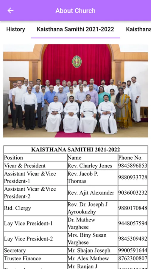 Parish directory of The Mar Thoma Syrian Church, Bengaluru