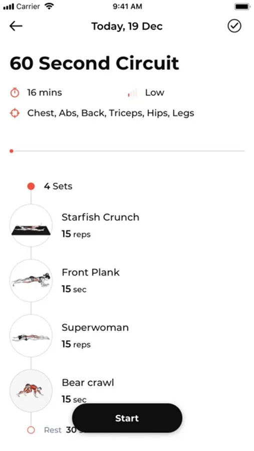 App also uses Apple Health to track energy burned and heart rate during a workout session, if an Apple Watch is used.
