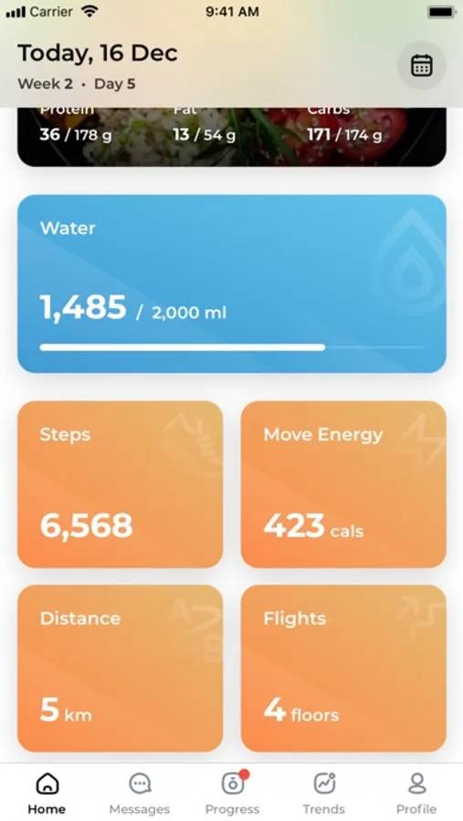 The app integrates with Apple Health to show your daily activity - distance, steps, active energy, and flights to help you better achieve your goals.