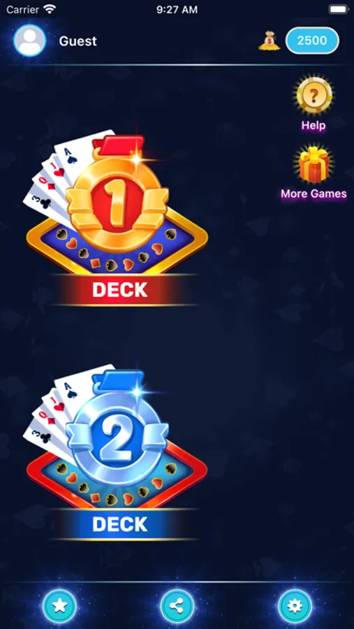 You will play with the same number of cards(52 cards) by selecting single deck or double deck. Only the difference between them is that, In a single deck, lower cards will be there. ex. 2,3,4…. And in the double deck, lower cards will be eliminated.