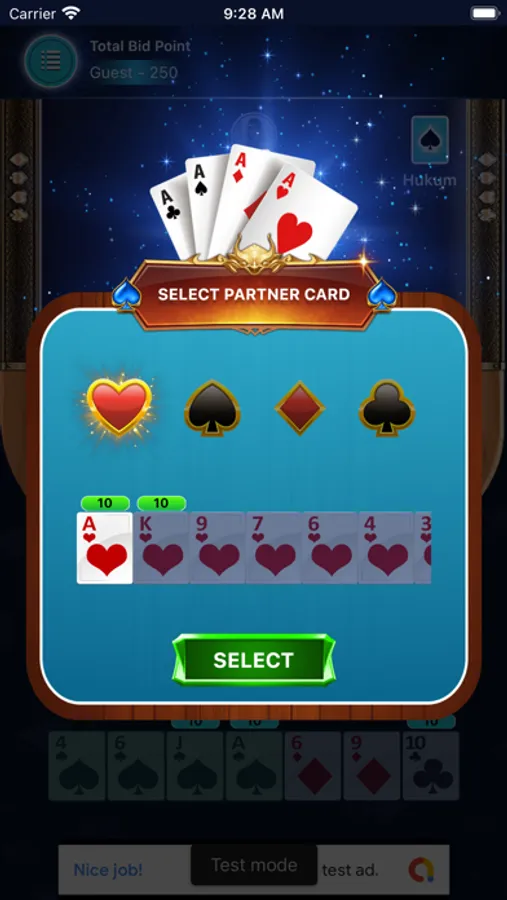 7) Now, Select the Trump (Hukum) in the next step and select one card which will decide your partner, when it is revealed.