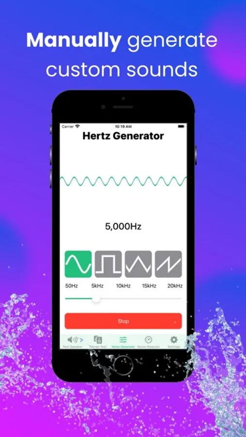This application offers users the capability to test the functionality of their speakers by generating specific sound wavelengths and tones. With a single click, the app automatically generates a clear sonic sound wave. Additionally, the app enables users to perform a stereo test to identify any issues with their speakers, such as muted or insufficiently loud output. Moreover, the application facilitates the generation of diverse sound waves with variable frequencies.