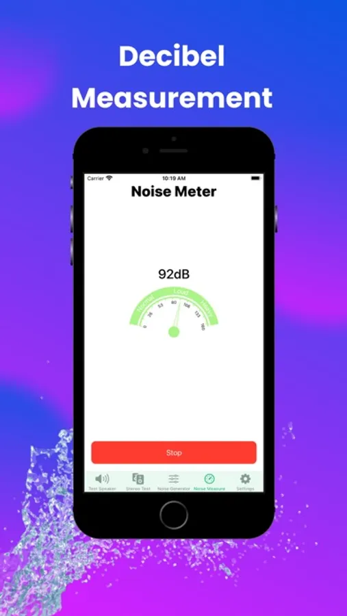 Furthermore, the app includes a built-in noise measuring feature that allows users to assess the loudness of their surroundings using a decibel meter. Simply by granting access to the speaker and pressing the start button, the app will display the loudness level of the environment.