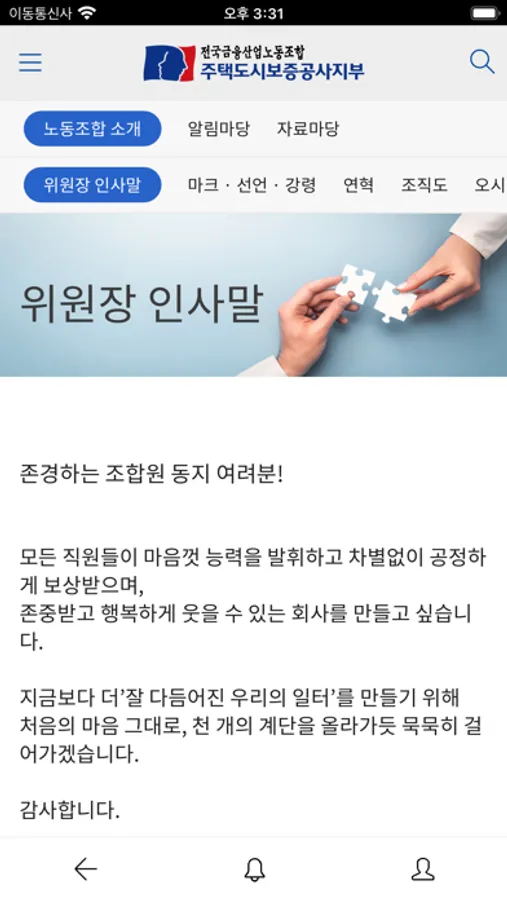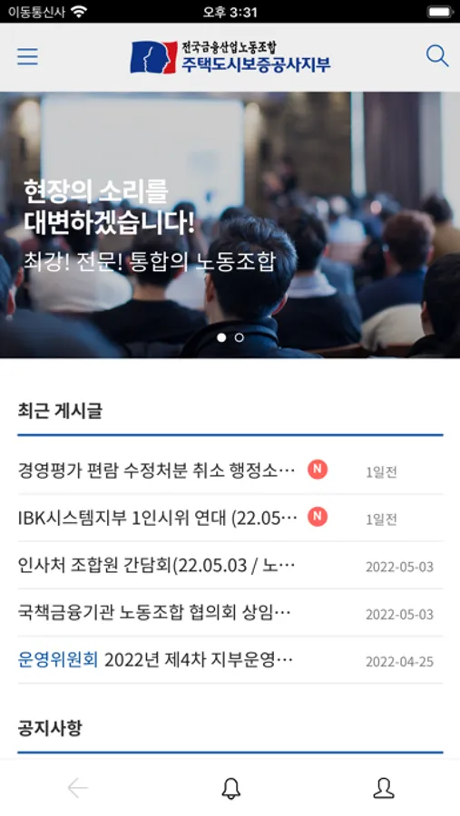 안녕하세요. 전국금융산업노동조합 주택도시보증공사지부 공식어플리케이션 입니다.