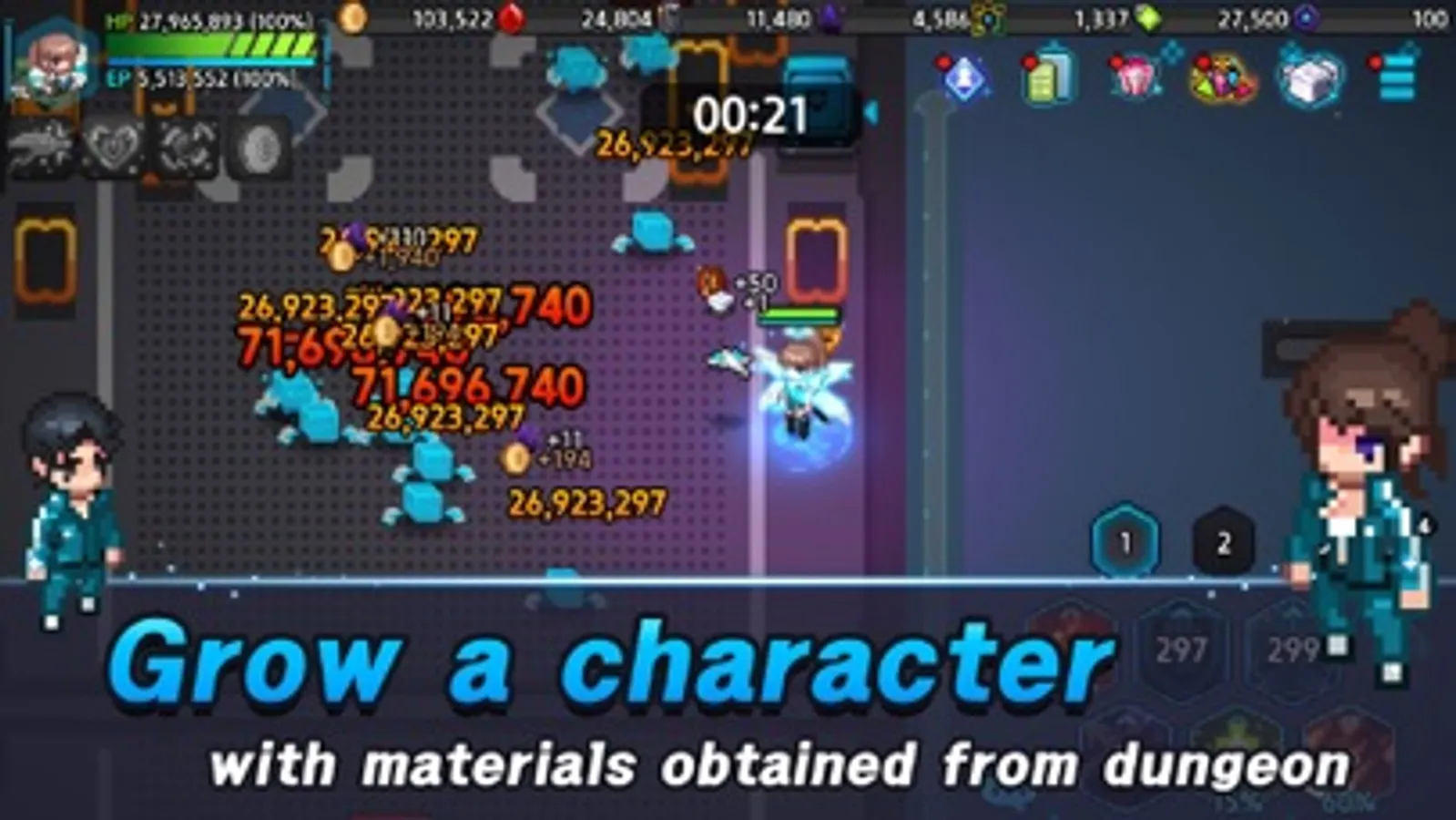 Grow a character and defeat monster through growth and research system!