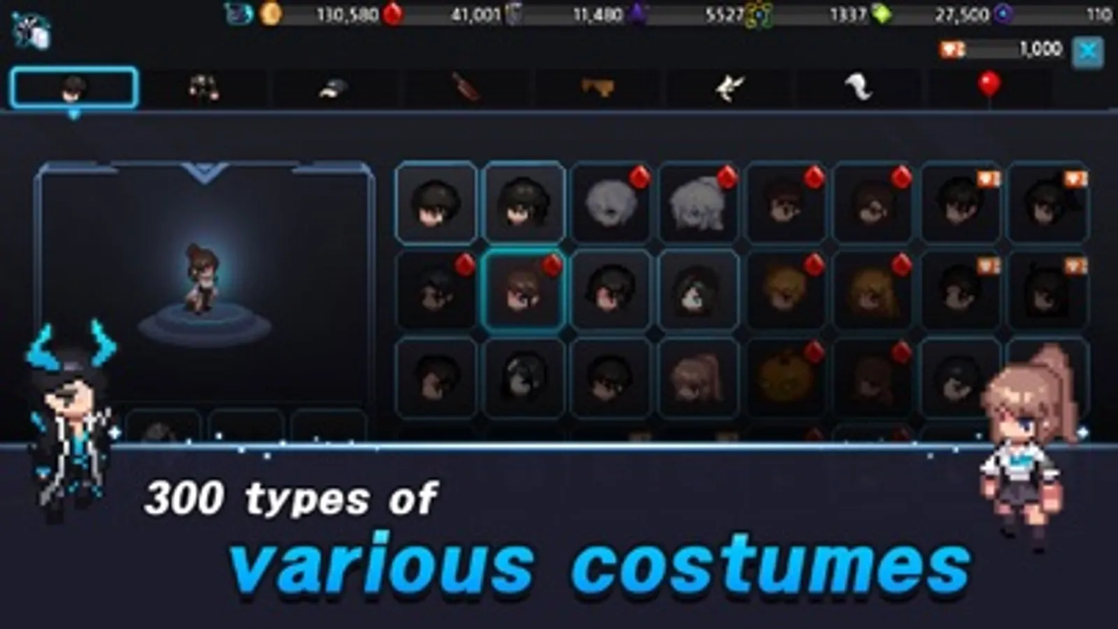 - Decorate a character with 300 types of various costumes.