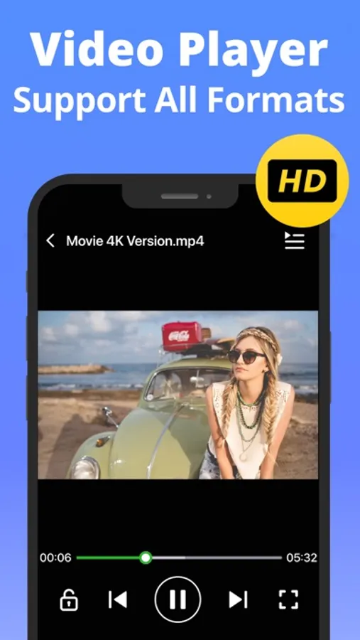 - Support all media formats with full-screen mode