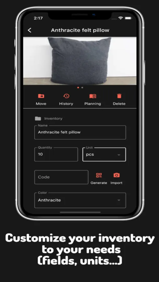 Units: Completely customize your inventory experience by adding any units you need (meter, square foot, pcs …)
