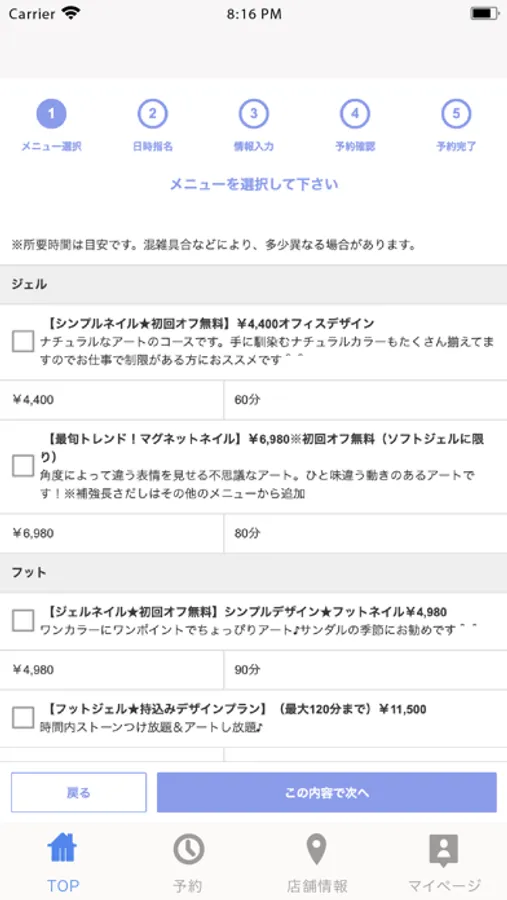 予約状況の確認やキャンセルがマイページ上から行えます。スタッフの登録が出来るので前もって担当者を登録しておけばマイページからスムーズな指名予約が可能です。