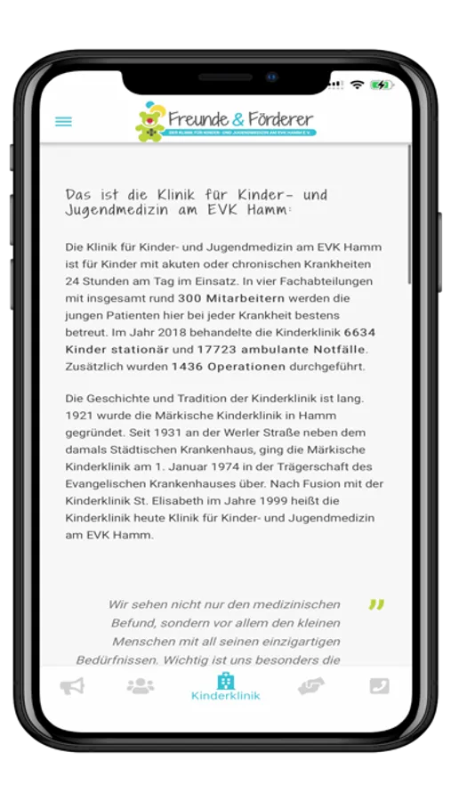 Mit dieser App bietet der Verein die Möglichkeit, die aktuellen Entwicklungen zu verfolgen, sich über die Klinik und den Förderverein zu informieren und Kontakt mit dem Verein aufzunehmen.