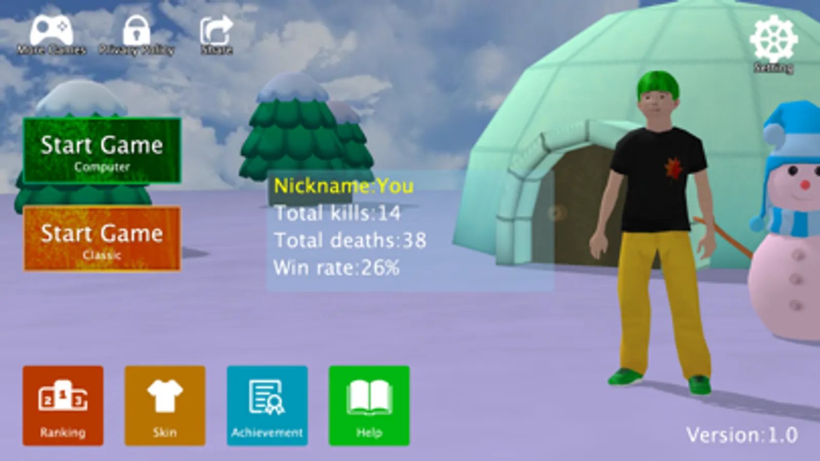 If you missed an exciting snowball fight with your friends in the snowy winter, then you must not miss this opportunity again, right now, here, you no longer need to wait for the romantic snow season, no You need to put on a thick down jacket, come directly to our game world, and have a wonderful snowball fight with your friends! Even if winter has passed, even if the sun is shining outside the window, our world is still full of snow, waiting for you to rub snowballs and hit others in the face happily.