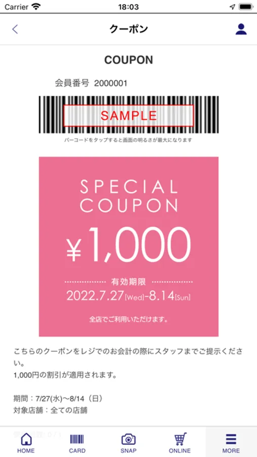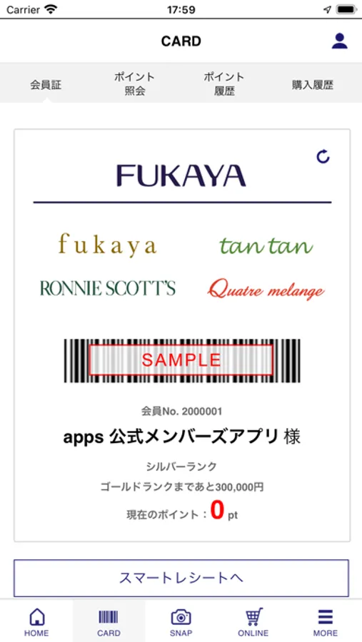 会員ランク・ポイント照会・購入履歴が確認できます。