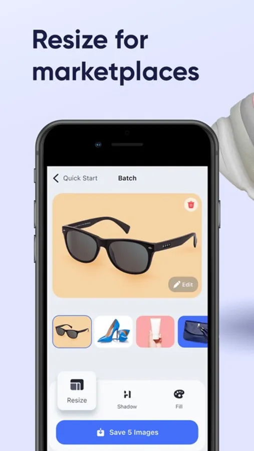 - Resize your pictures, editing them to the perfect size for the marketplace — Amazon, eBay, Depop, and more