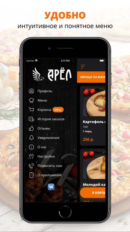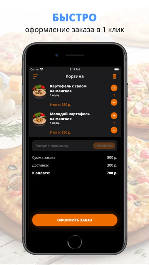 Скачивайте наше приложение, оформляйте заказ и наслаждайтесь любимой едой, где бы Вы ни были! Приятного аппетита!