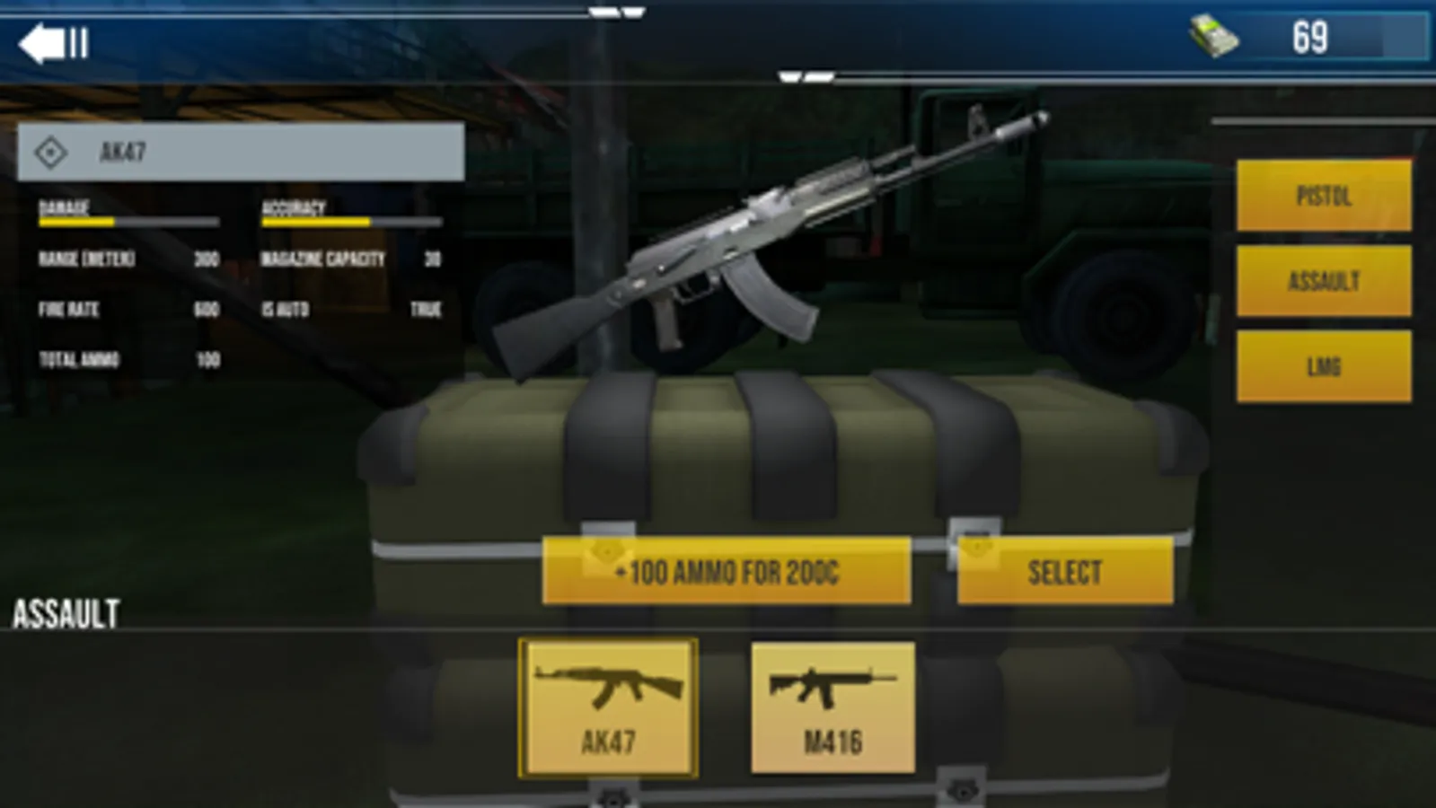 Powerful weapons like Assault AK47, M16, LMG S36, M41LMG, SHOTGUN BY15, Striker, PISTOL J358, and MW11 need to unlock