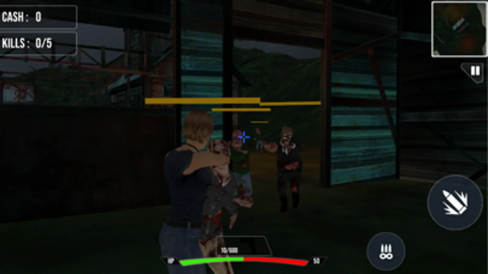 Journey through the zombie Catastrophe with the armament of weapons in a race to preserve yourself so load your weapons and get ready for the catastrophe. There is only one main player and that player will find the zombies and kill them using his weapon. If the player enters the zone or the other zombie is hit by the player in its region, zombies will activate and begin following the player. The number of zombies will increase with time, to increase the difficulty. After slaying zombies, the player will receive money in a random amount. Players can spend that collected money to unlock the weapons and buy guns