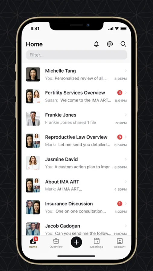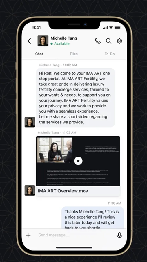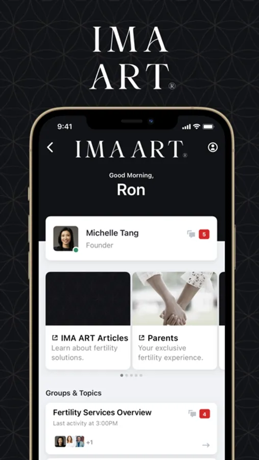 IMA ART Fertility values your privacy and we work to provide you with a seamless experience. The IMA ART app connects all relevant parties within a private eco-system. Send and receive secure messages, schedule virtual consultations, review your medical plan, and more with the IMA ART app.
