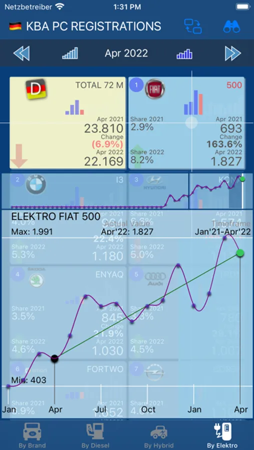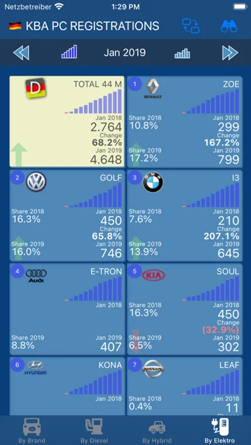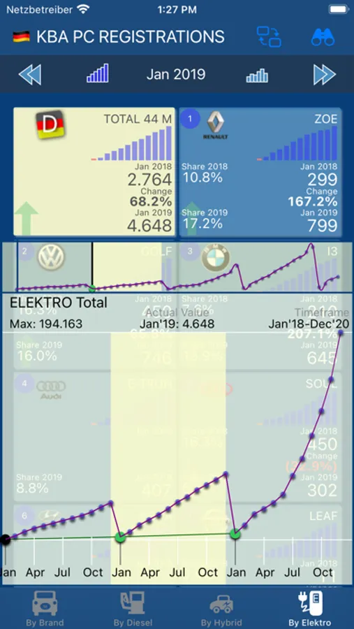 Monthly analysis of new car registrations in Germany based on passenger car registrations collected and offered online by KBA the Kraftfahrt Bundesamt. The KBA central vehicle register stores the vehicle and owner data of all vehicles with registration plates transmitted by the local registration authorities.