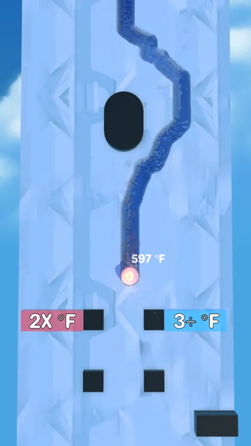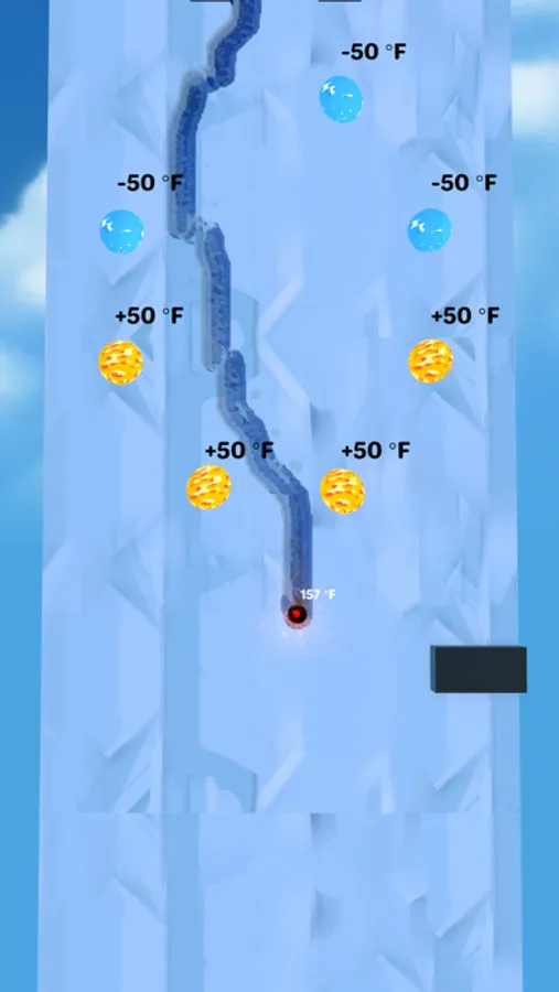 Melt the ice, choose gates, collect lava blocks to get bigger and increase your heat