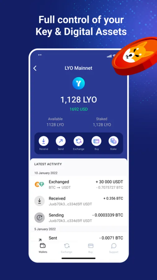 LYOWALLET is a non-custodial crypto wallet. You have full control of your key and digital assets, such as cryptocurrencies, tokens, and NFTs. As it is non-custodial, your keys are stored on your device only and never shared with anyone.