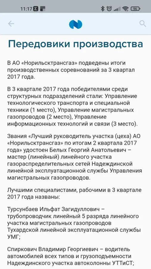 Данное приложение предназначено для внутреннего использования сотрудниками компании АО «Норильсктрансгаз».