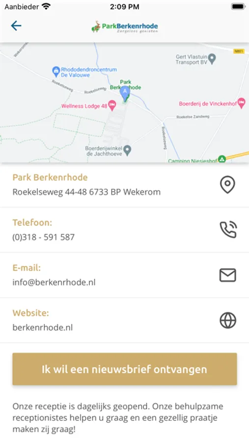 Met onze eigen app heeft u alle nodige informatie voor uw verblijf binnen handbereik. Geniet van onze uitgebreide faciliteiten en lees de laatste nieuwtjes, activiteiten en bekijk wat er in de omgeving te doen is.