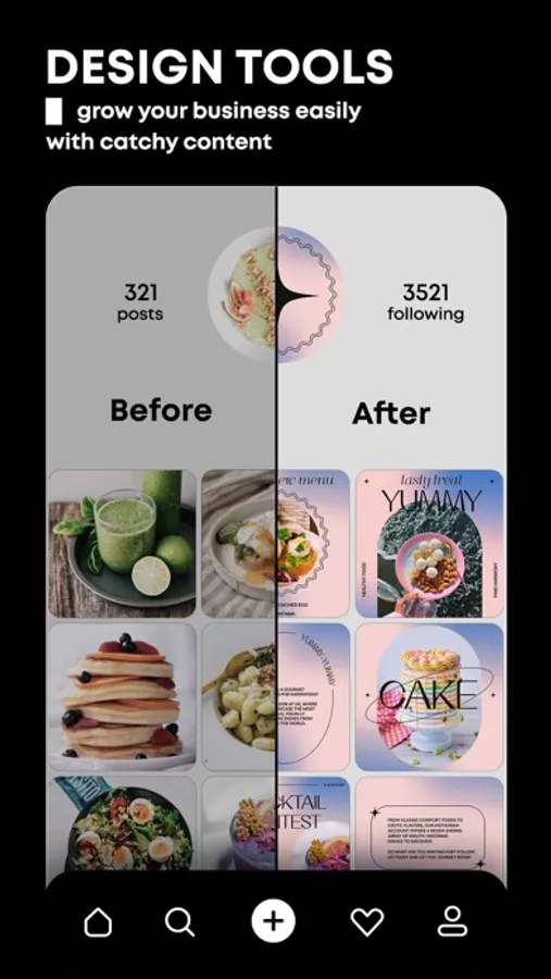 Turn a new page in your brand’s history: steal the show with a visual identity that fits your narrative! From designing logos to making crisp engaging stories and hyper-custom ads, create standout assets for consistent image across platforms. Get captivating content that ensures the audience sets the sights on your business for good—in mere taps.