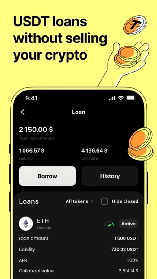 However, our wallet isn't just a place to store your crypto assets. We offer unique opportunities to make money from your assets. With our crypto loans and deposits, you can earn interest on your cryptocurrencies, earning income that far exceeds traditional bank rates.