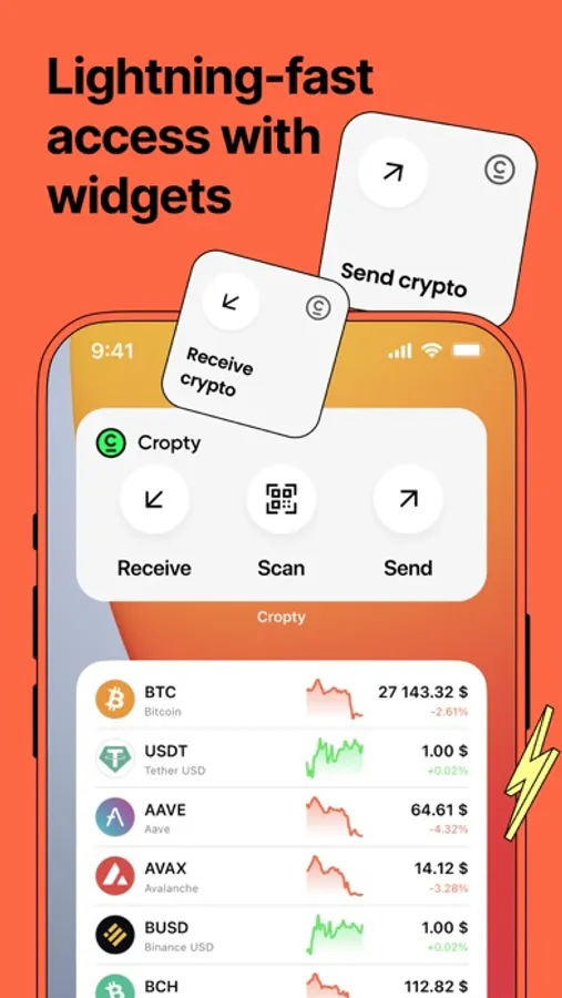 With Cropty you can safely store a variety of cryptocurrencies including Bitcoin (BTC), Ethereum (ETH), Tether (USDT), BNB and many more. Our wallet supports multiple currencies, allowing you to diversify your portfolio and manage it in one place.