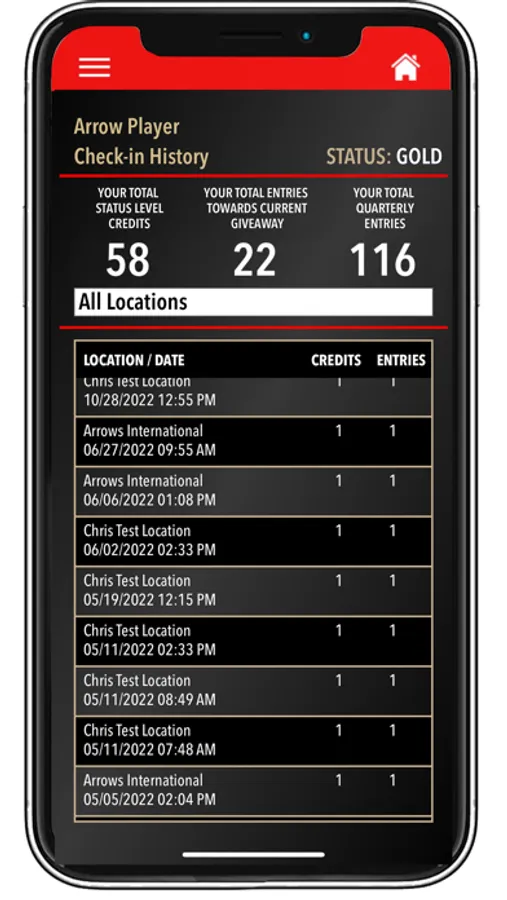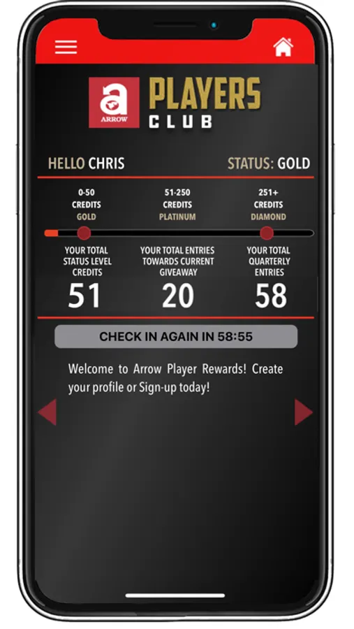 - Track your progress in Arrow Players Rewards – Status-Level Credits and number of entries into each giveaway!
