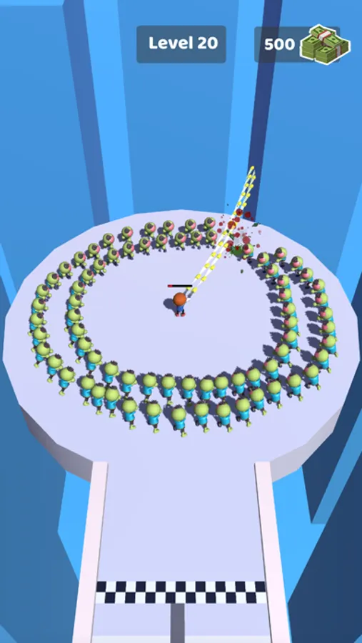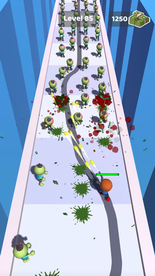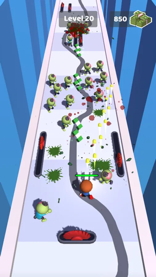 Draw a path to the finish line and avoid obstacles, then gun all the zombies in your way!