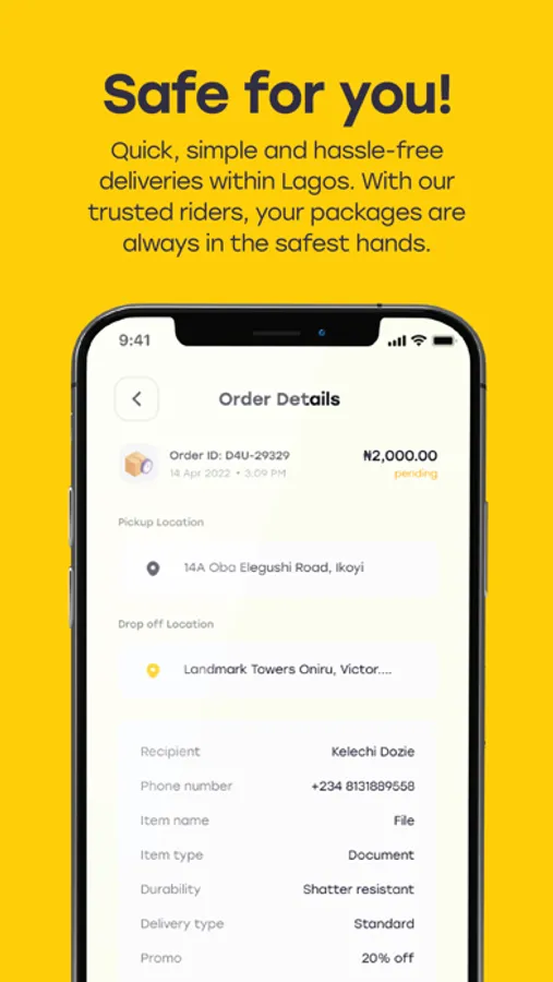 We offer pick-up and delivery services in Ikoyi, Victoria Island and Lekki areas of Lagos state.