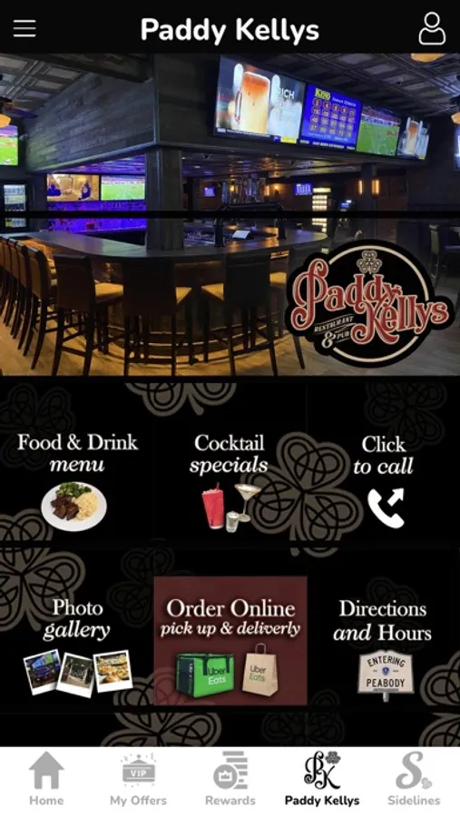 - Order Sidelines or Paddy Kellys pick-up or delivery directly from the app