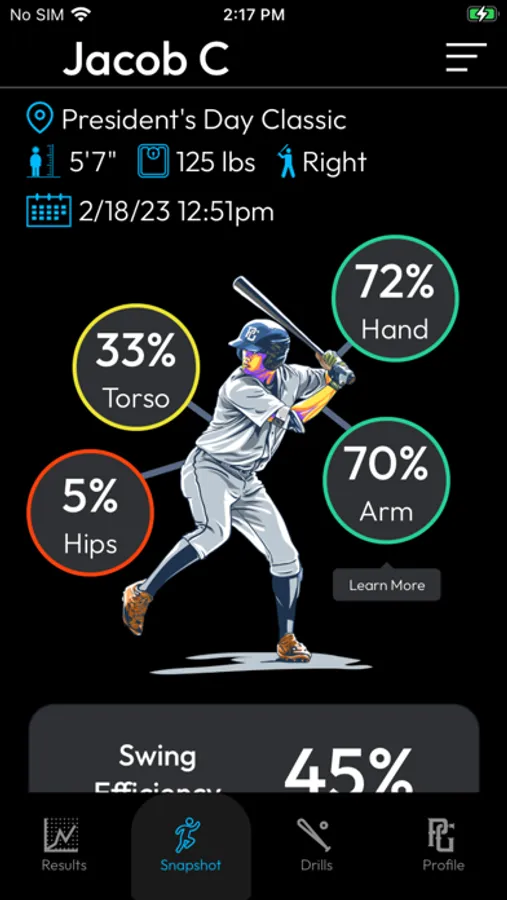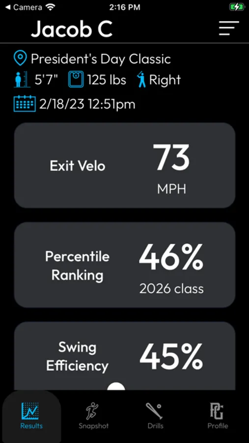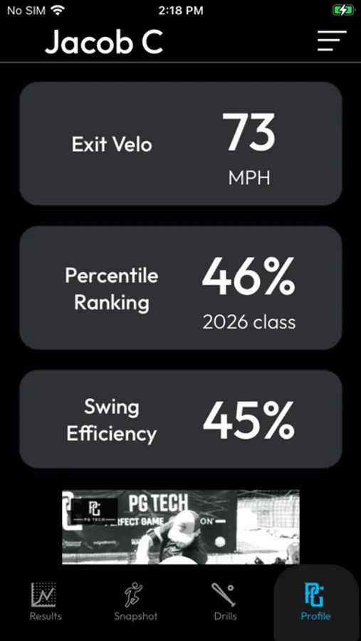 The PG Tech app helps baseball players increase their exit velo. It shows you where you rank versus other players today and where you can get with PG Tech. Find your biggest swing weakness, get targeted drills to fix it, and update your PG profile exit velo.