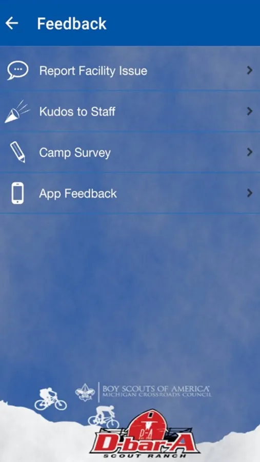 Support for this app is limited; camp staff will not be able to handle any technical issues you may encounter. If you have feedback on the App, please submit those via the Feedback App Feedback form.