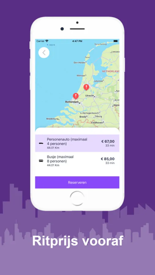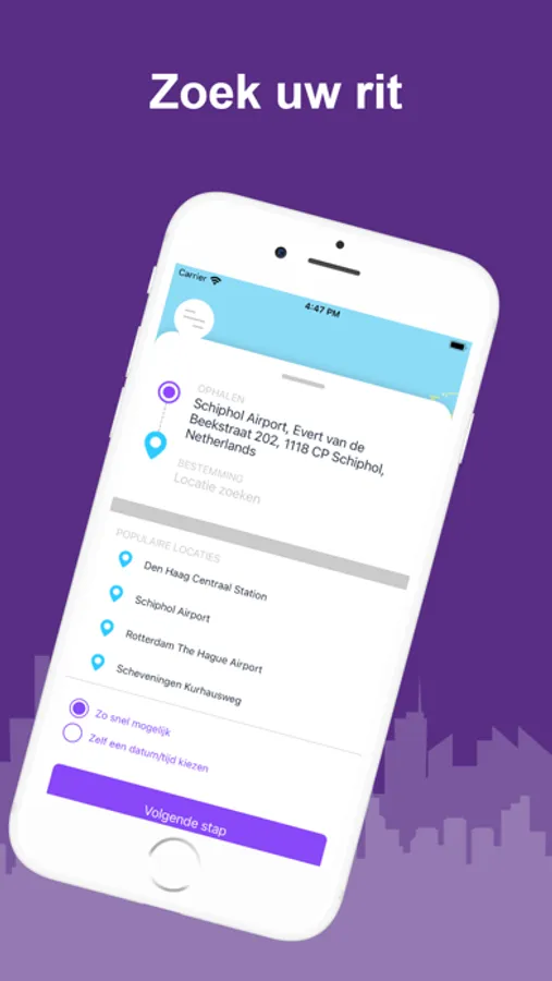 De CAB4SURE app is een app voor taxi ritten in Den Haag en omstreken. U kunt direct uw route berekenen en u weet direct wat de rit gaat kosten. Ook voor luchthaven vervoer in binnen en buitenland kunt u de CAB4SURE app gebruiken. Reserveringen via de app met aantrekkelijke ritprijs korting.