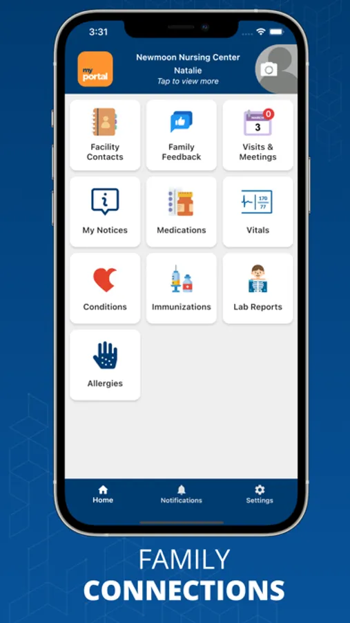 Family Access to Health Data - View your loved one's patient chart in real-time from your phone. View their medication list, nutrition, and vitals - including heart rate, pain level, and more!